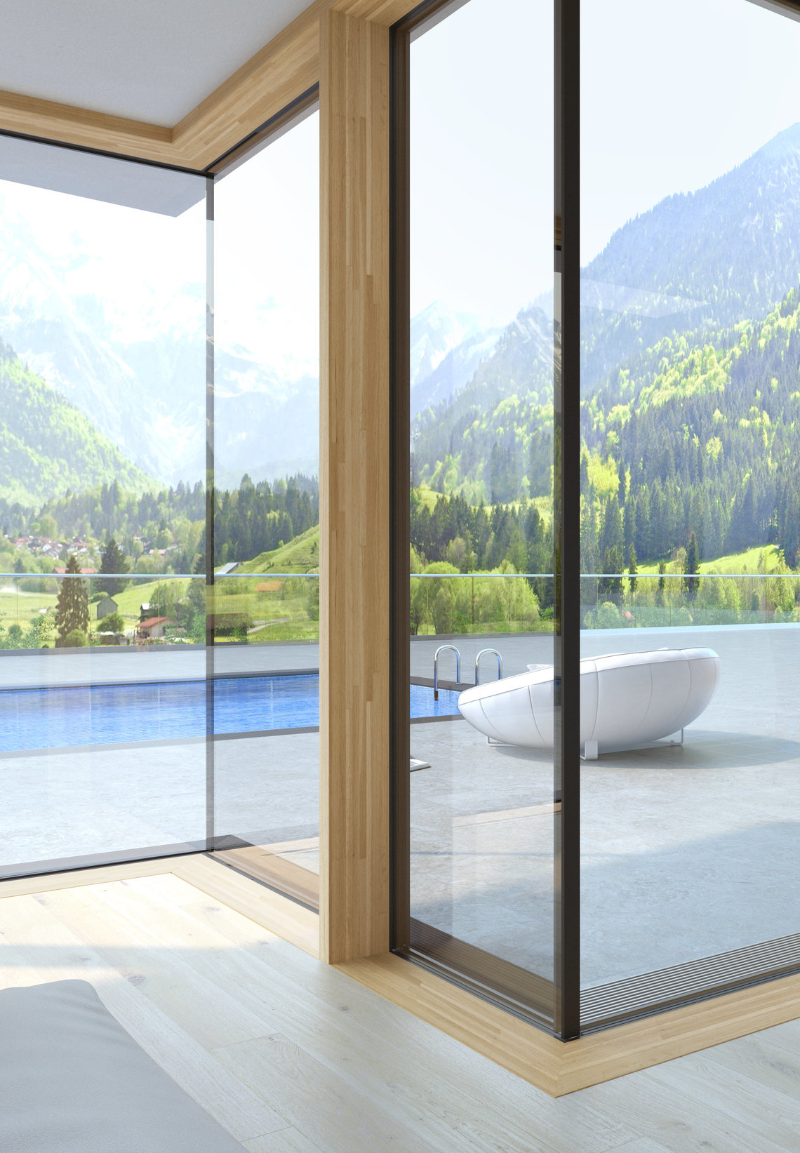 SKYWALL FTS 4.0 erlaubt nun endlich die individuelle Aneinanderreihung von Hebeschiebe-Elementen-, Balkontür-und/oder Fensterelementen, und großflächigen, bodentief verglasten Fixelementen. Durch die hochwertige Pfosten-Riegel-Konstruktion werden die verschiedenen Bauelemente nicht nur einfach aneinander gekoppelt, sondern optisch und technisch »nahtlos, aus einem Guss« verbunden!