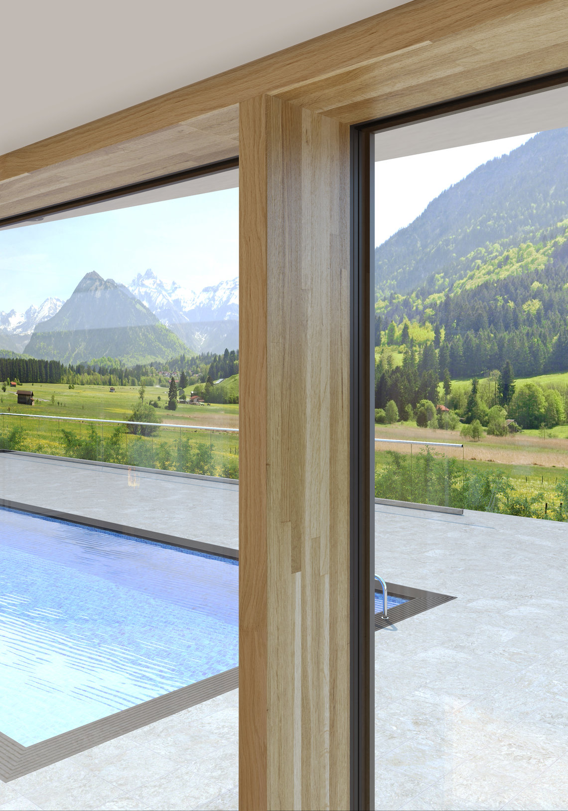 Das SKYWALL-System basiert auf einer hochwertigen Holz-Konstruktion aus senkrechten Pfosten und waagrechten Riegeln.