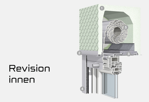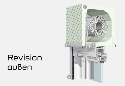 Kunststoff, optional Aluminium, Schachtöffnung 80 mm oder 120 mm | Bei integriertem Insektenschutz-Rollo entfällt die Revisionsblende (Kassette des Insektenschutz-Rollos ist demontierbar)
